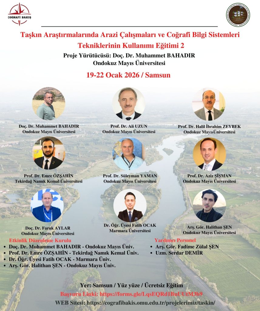 TÜBİTAK 2237-A Bilimsel Eğitim Etkinlikleri Desteği Programı; ön lisans, lisans ve lisansüstü öğrenciler yanında araştırmacılara bilimsel çalışmanın temel mantığını kazandırmak ve akademik gelişimlerini sağlamaya yardımcı olmak amacına yönelik hazırlanan bilimsel eğitim etkinliklerini desteklemektedir. Programın bu kapsamına uygun olarak “Taşkın Araştırmalarında Arazi Çalışmaları ve Coğrafi Bilgi Sistemleri Tekniklerinin Kullanımı” başlıklı bu etkinlikte Türkiye’nin farklı üniversitelerinde çeşitli bilim dallarında taşkın konusunda araştırma yapan bilim insanları ile farklı üniversitelerden genç araştırmacıları bir araya getirerek lisans ve lisansüstü programlarda doğrudan detaylı eğitim verilmeyen teorik, arazi uygulamalı ve bilgisayar uygulamalı bütünleşik bir taşkın eğitimi verilmesi amaçlanmaktadır. Bu amaç doğrultusunda etkinliğe 4 yıllık Coğrafya lisans programından mezun olmuş ve Coğrafya Anabilim dalında lisansüstü eğitim görmekte olan öğrenciler katılımcı olarak katılabilecektir.
